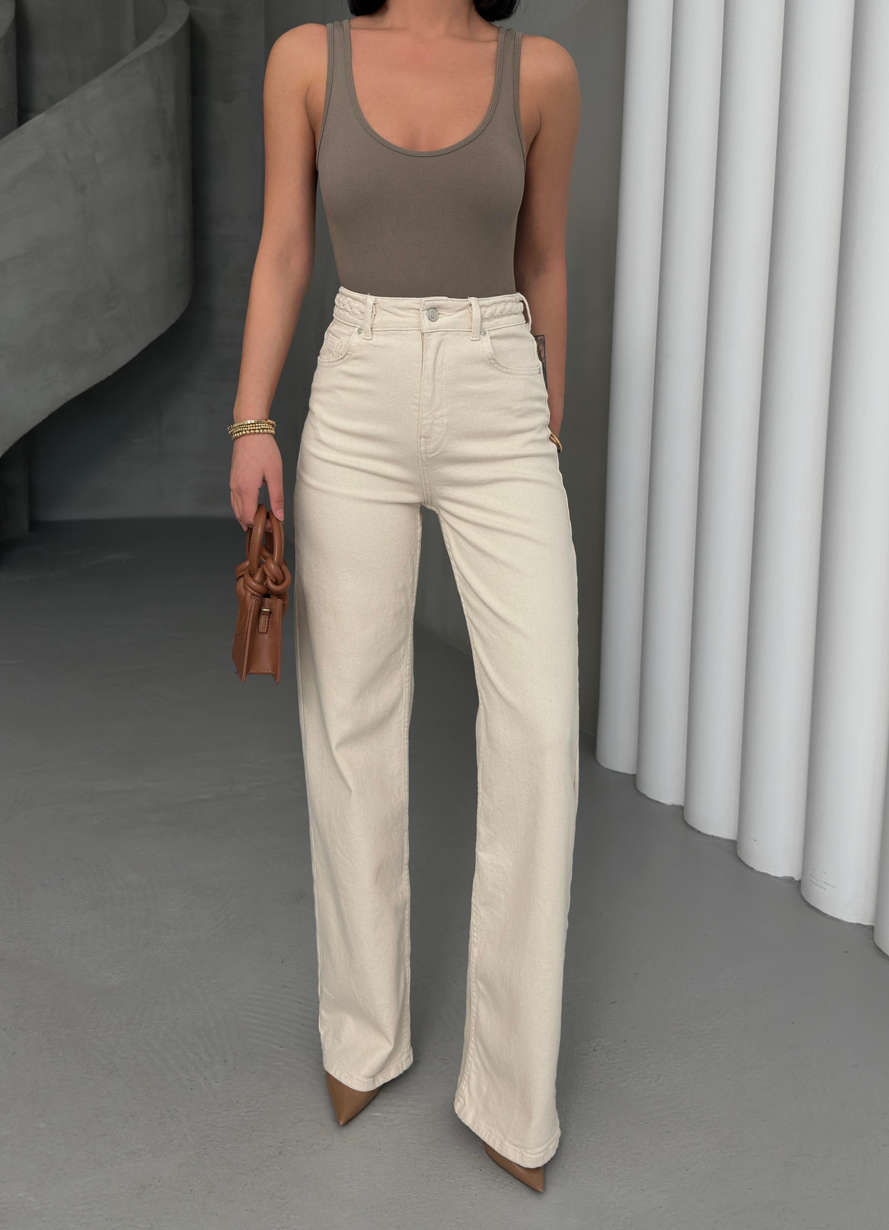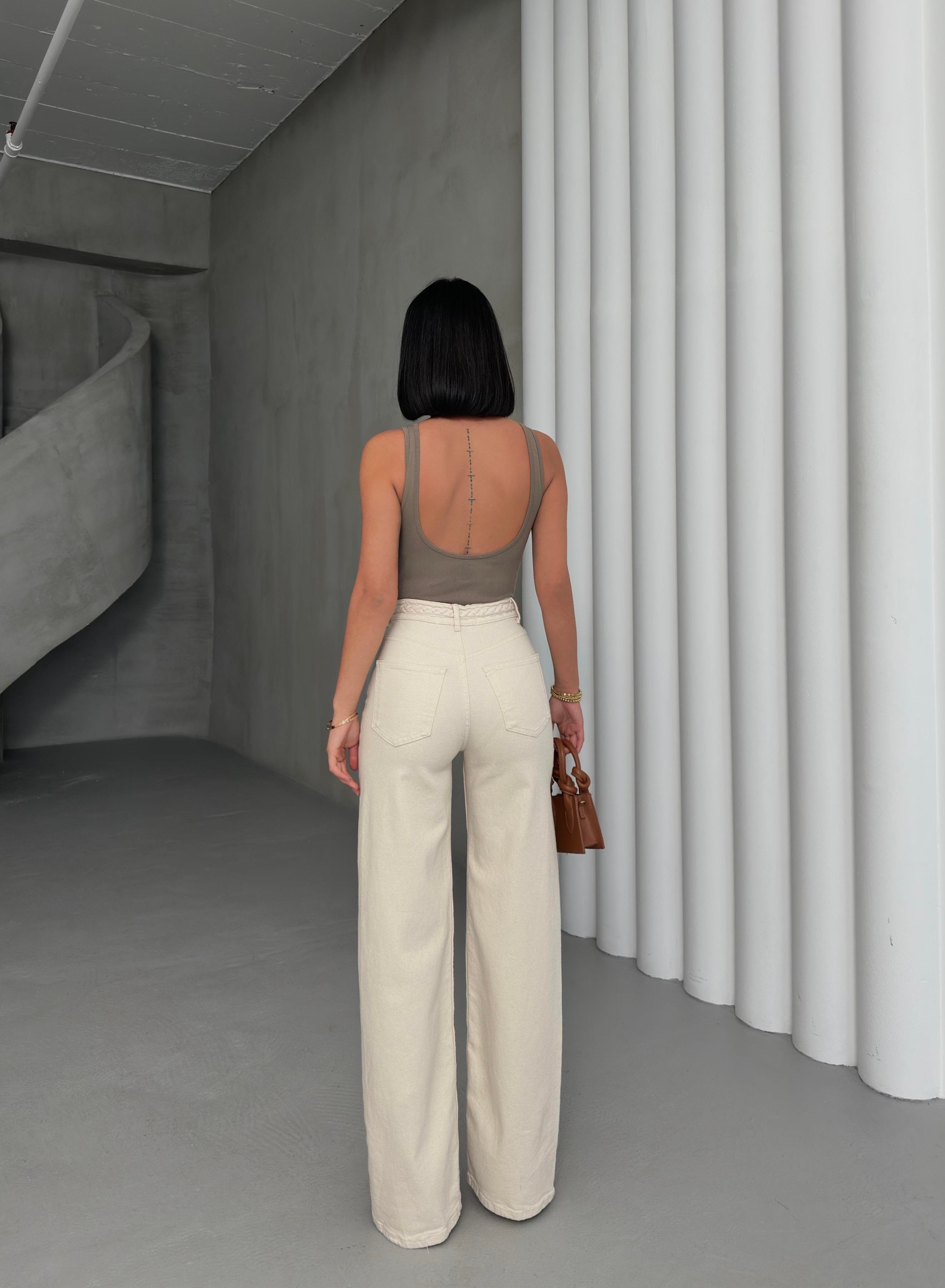 Women's High Waist Loose Cut Natural Belt Knit Detailed Jean Pants (WIDELEG-7869-34)
