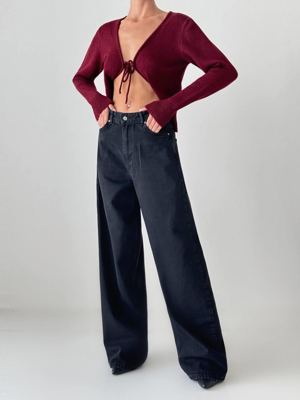 Extra Wide Leg Black Jean Trousers (EXTRAWIDELEG-7588-BLACK-34)