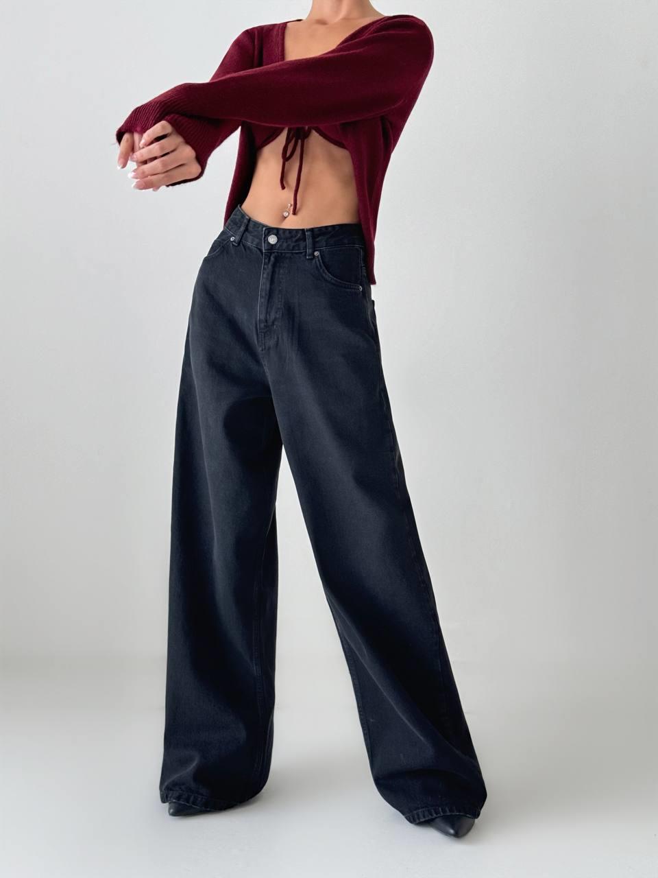 Extra Wide Leg Black Jean Trousers