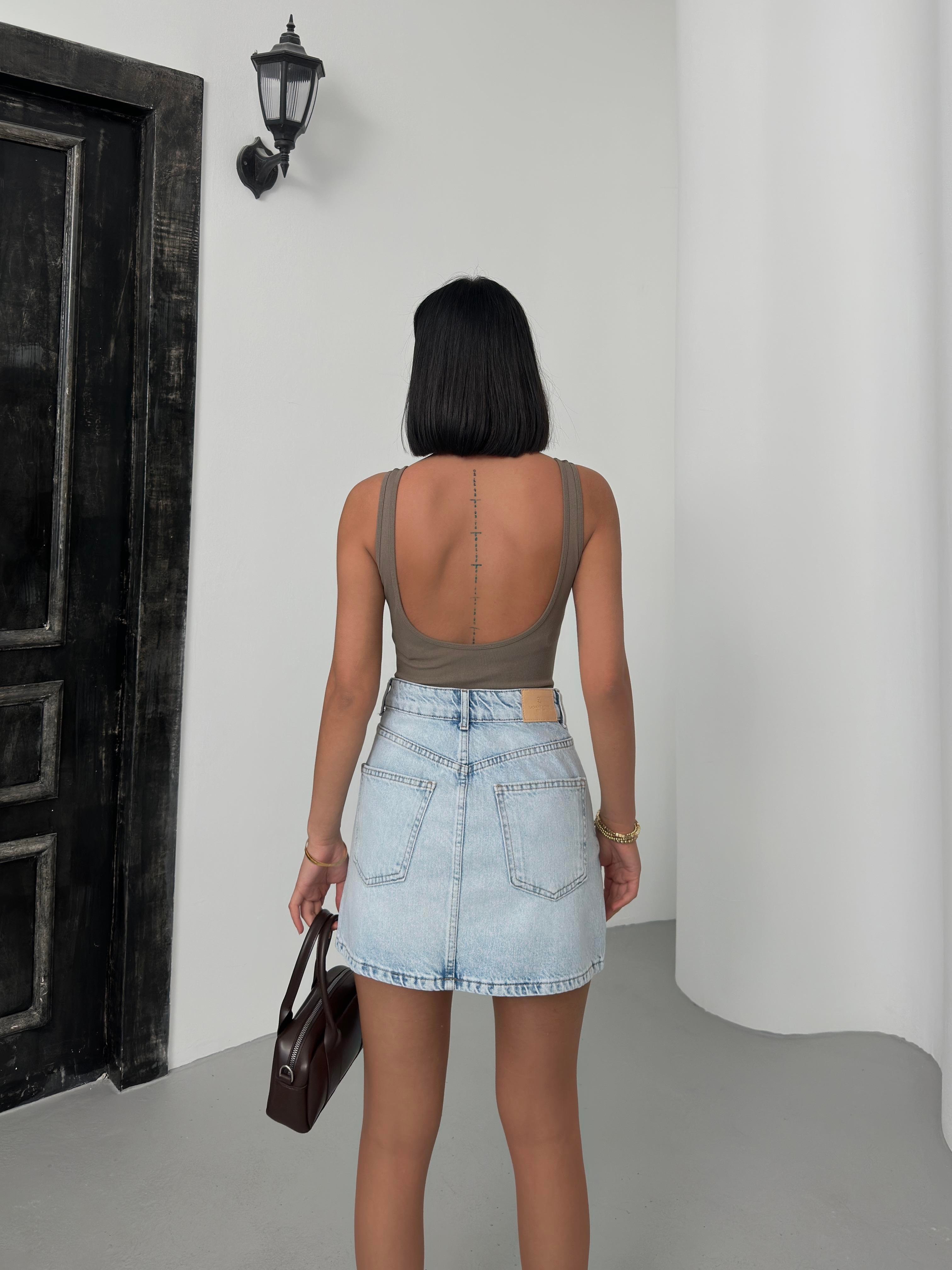 Front Back Pocket Detailed Over-the-Knee Light Blue Jean Skirt (ETEK-8016-L)