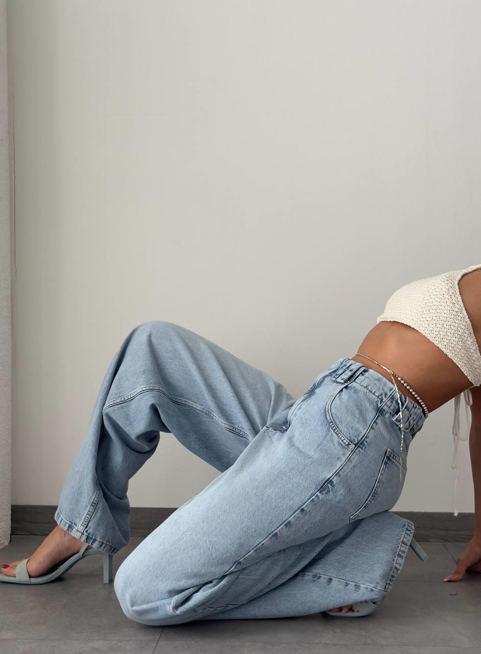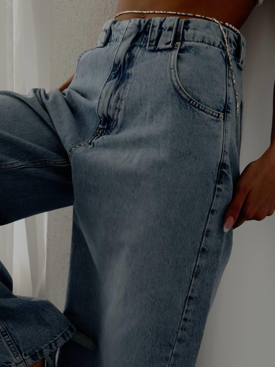 High Waist Loose Cut Light Grey Jeans High Waist Loose Cut Light Blue E. Wide Leg Jeans