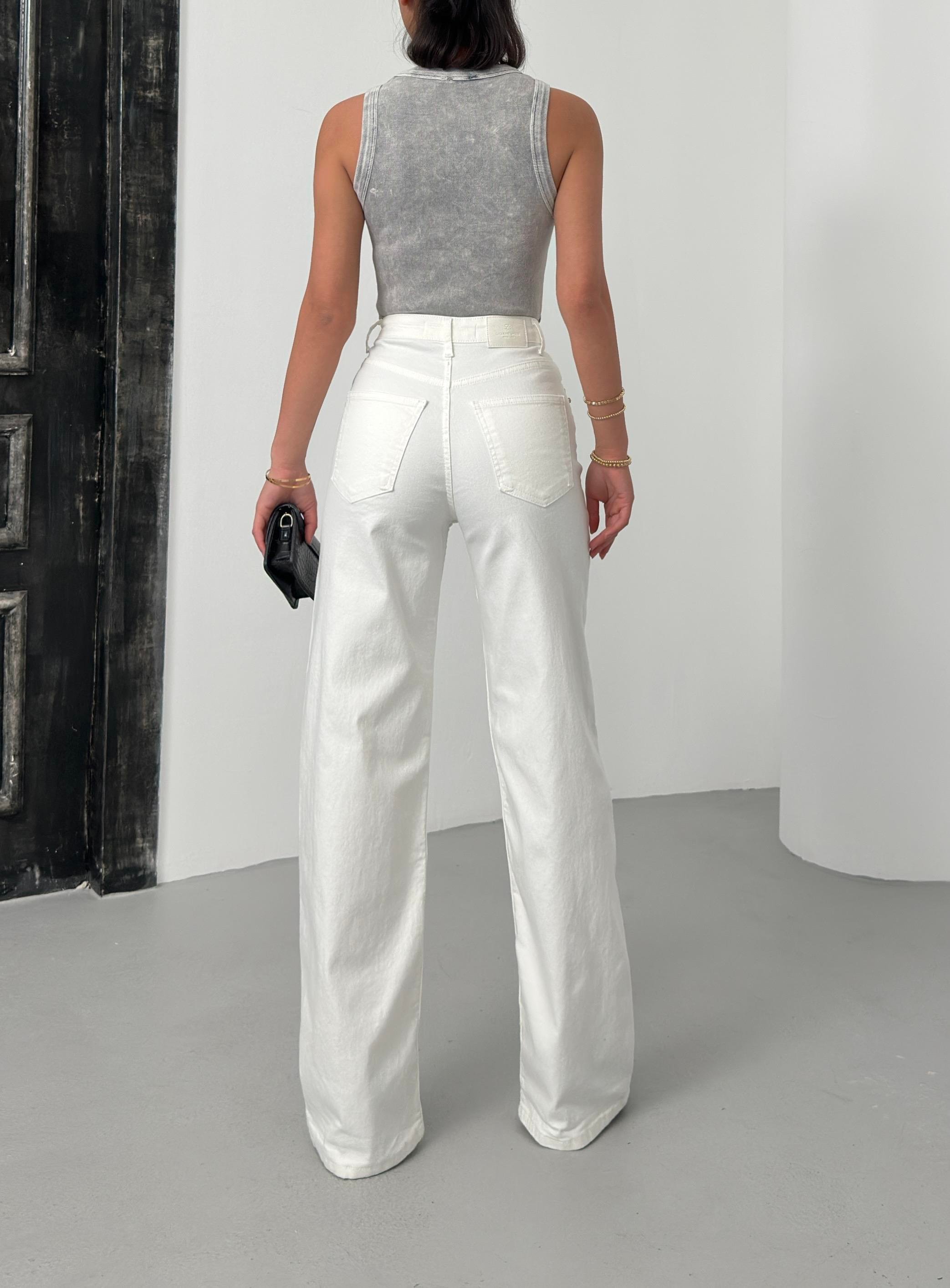 High Waist Pocket Front Pocket Stone Processing Detailed White Jeans (WIDELEG-7984-BEYAZTASLI-34)