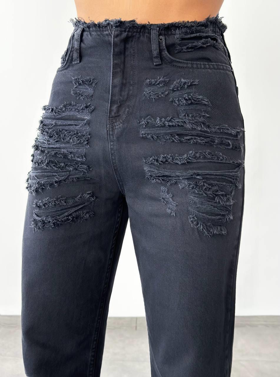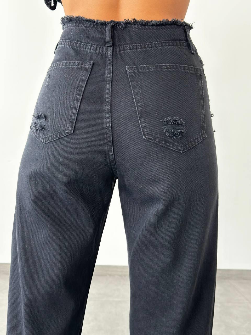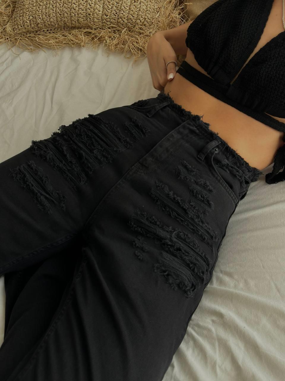 Black Straight Jeans with high waist detail (STRAIGHT-7617-SİYAH-34)