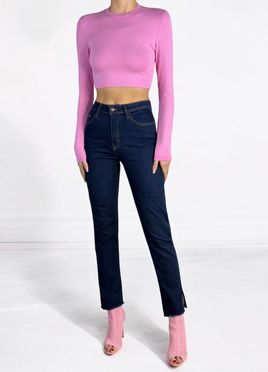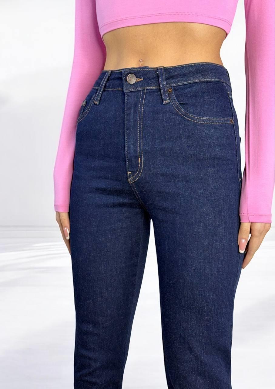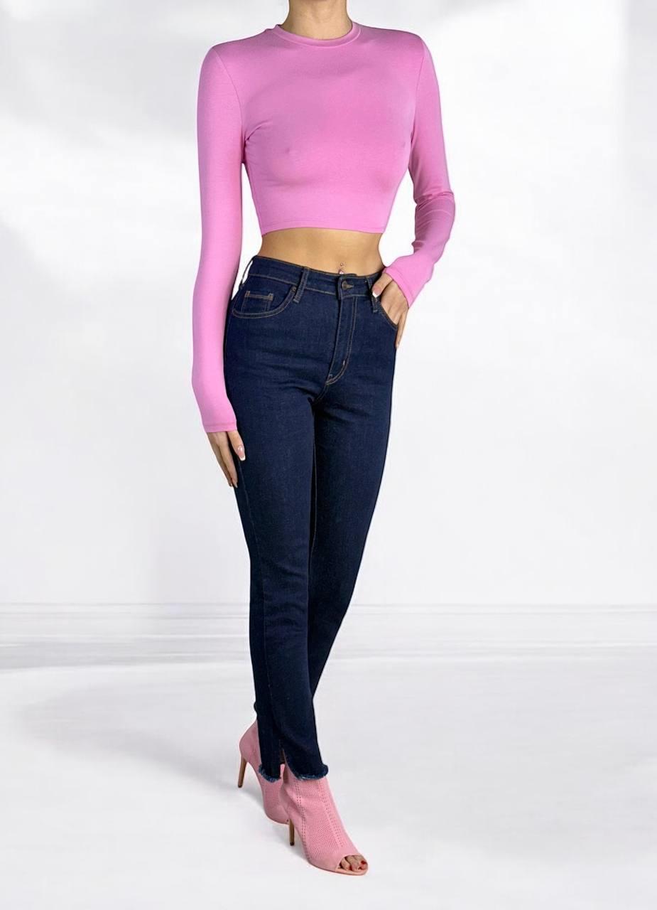 High Waist Leg Dirty Stitching Detailed Side Slit Rinse Jeans (MIA-7413-RINSE-34)