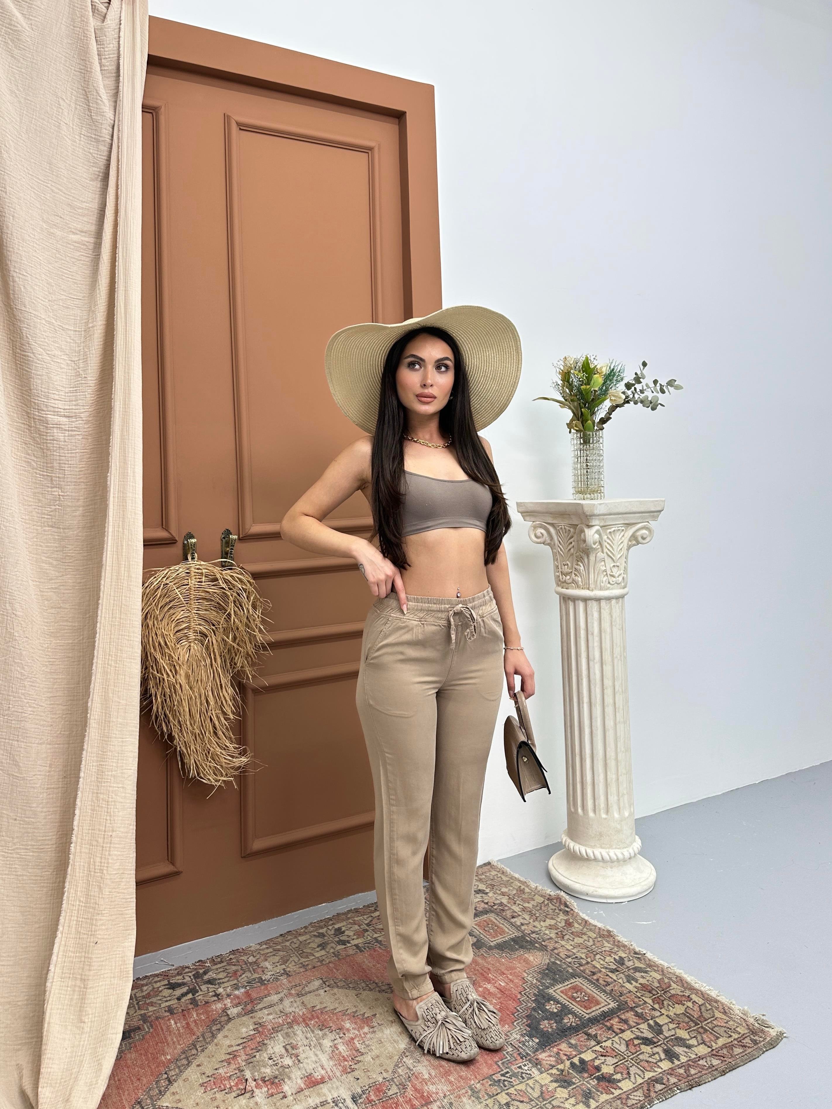Женские джоггеры на резинке цвета визон (JOGGER-7589-VIZON-L)