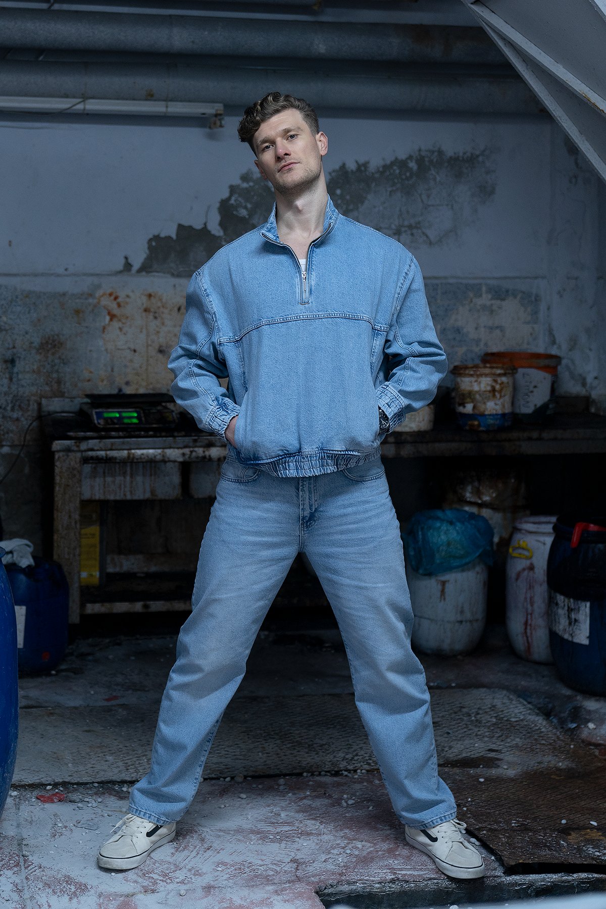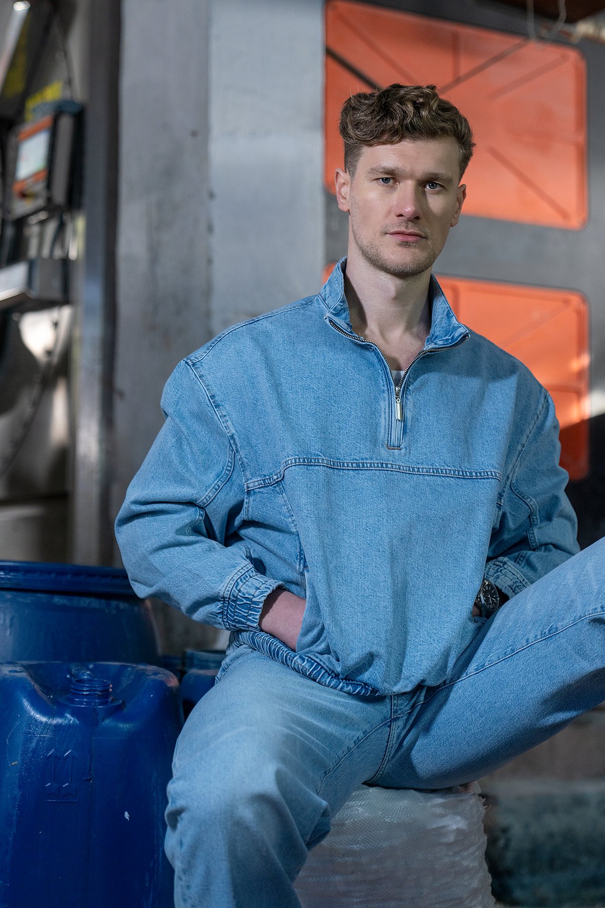 Толстовка синего цвета с молнией на воротнике. Толстовка серого цвета с молнией на воротнике.