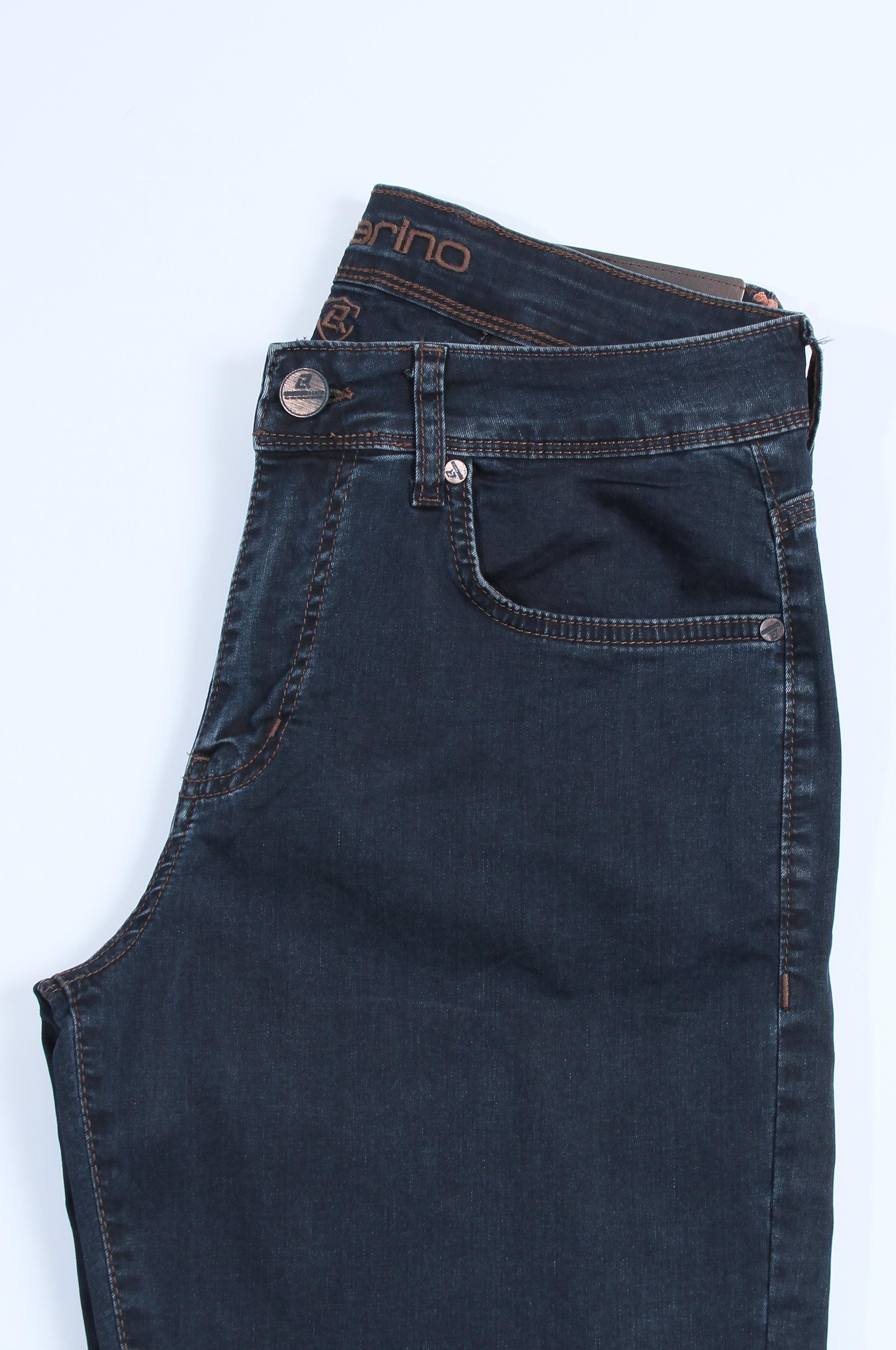 High Waist Straight Leg Battal Cut Blue Brown Jeans (MATRIX-7490-BLUEKAHVE-32)